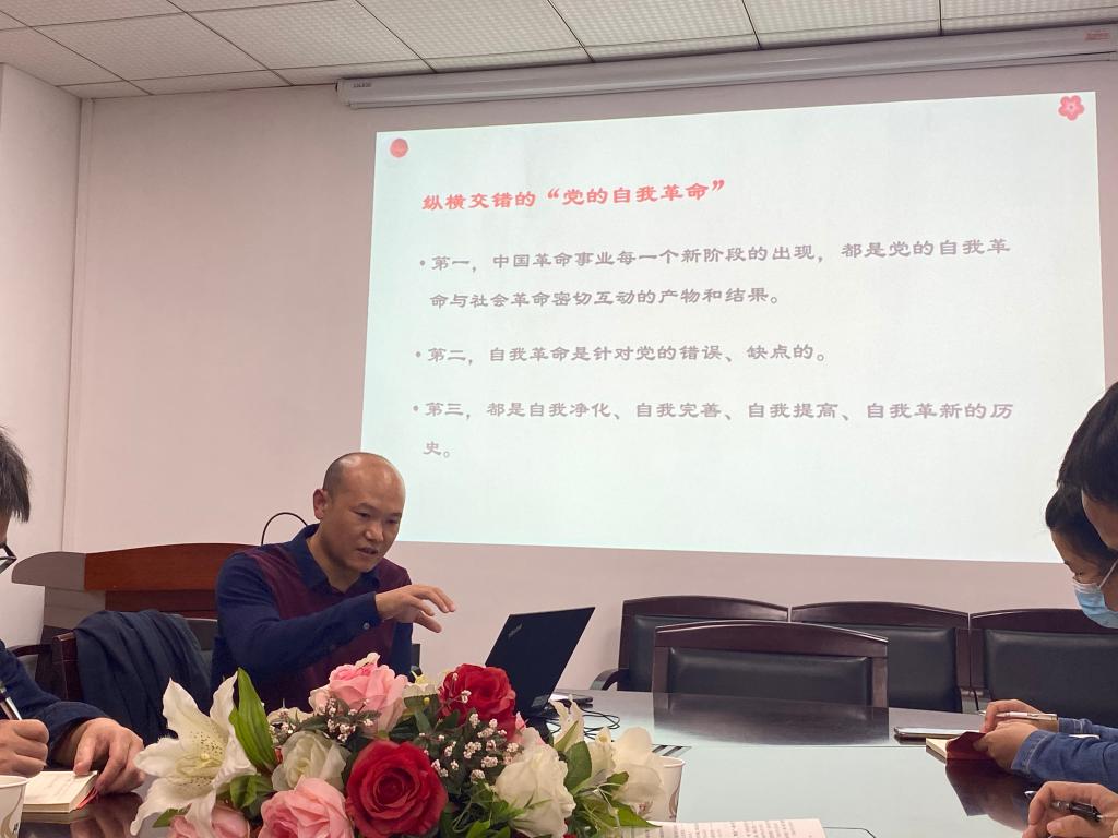 会议伊始,徐信华教授对《习近平谈治国理政》第四卷二十一章节进行了介绍,围绕“伟大自我革命引领伟大社会革命的历史和经验”这一主题,提出三个问题:其一是何为自我革命、何为社会革命;其二是党的自我革命如何引领社会革命的演进;其三是如何实现以党的自我革命引领社会革命。