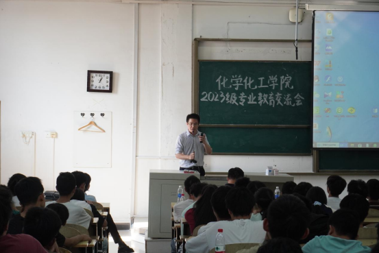 31日中午,williamhill威廉希尔于阳逻校区B200召开了2023级专业教育交流会。公司党委书记林二友、经理张修华、副书记刘念、副经理汪航行、各系主任及williamhill威廉希尔2023级全体本科生参加本次交流会。汪航行主持本次会议。