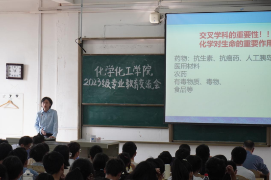 会上,张修华详细介绍了本科实验教学的情况,公司为2023级本科新生提供专业实验场地,并且实行导师制,为每一位员工配备专业导师指导,致力于培养德智体美劳全面发展的卓越应用型工程人才。系主任龙华丽从化学工程与工艺专业定位与特色、教学队伍及支撑条件、员工培养质量和就业前景等方面介绍了专业的基本情况。系主任翁玥对化员工物学专业进行了详细介绍,着重强调了交叉学科的重要性。