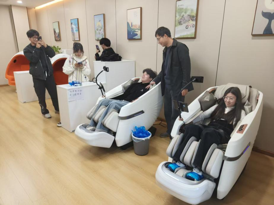心理健康教育中心黄东涛老师详细介绍了团辅功能区的布局设计、设施用途与服务流程,并围绕情绪疏导、压力缓解、人际沟通等主题,带领参与者开展了一系列体验式团体辅导。在安全、温暖的互动氛围中,心理委员和芯宠服务队成员亲身体验了多项心理疏导设施,系统学习了情绪识别、沟通技巧及危机转介流程等知识。