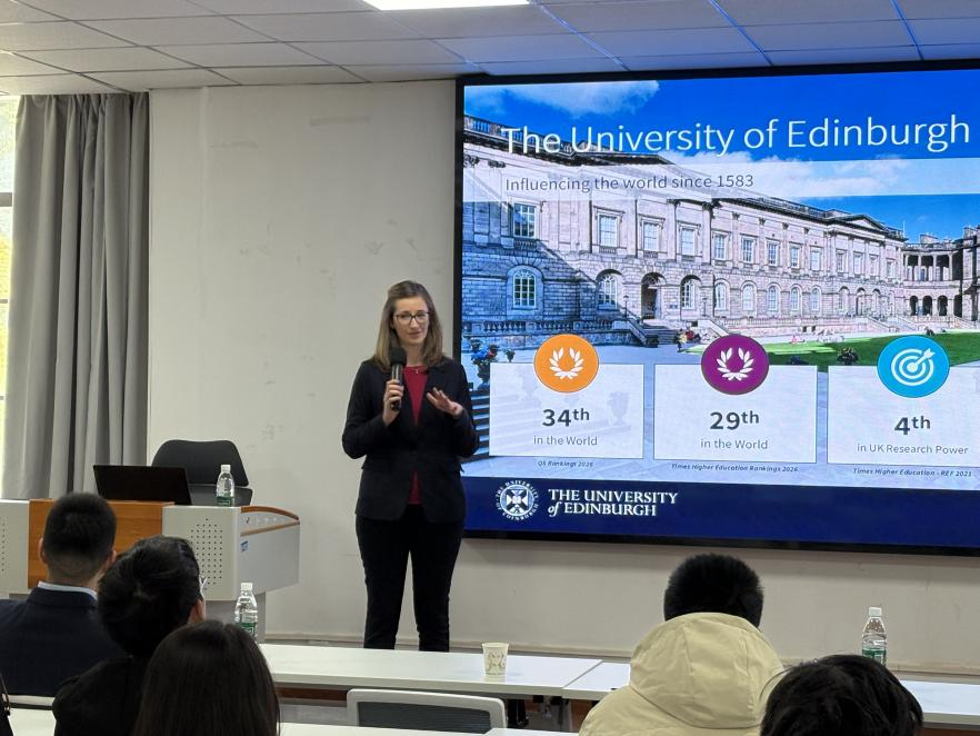 随后,爱丁堡大学国际招生负责人Francesca Coates女士为公司师生介绍了爱丁堡大学的悠久历史、学术氛围以及化工专业的独特优势。她详细讲解了与威廉希尔联合培养项目的课程安排、费用构成及申请流程等内容。在互动环节,同学们围绕专业选择、申请准备与学业规划等问题踊跃提问,现场气氛热烈。Francesca Coates女士与李伟副教授对师生的热情参与表示感谢,并期待未来进一步拓展合作空间。