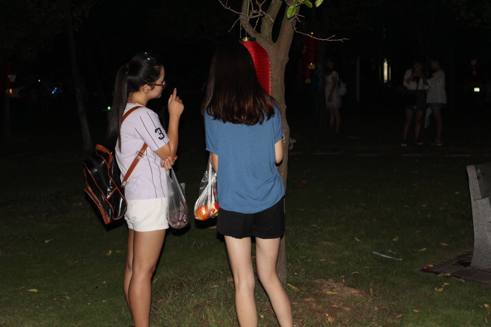 求索广场旁草坪上六条相互交叉的路,共有60棵树,每棵树上都挂着一个贴有字谜的灯笼。广场前来来往往的人纷纷驻足观赏猜谜。“我觉得这些灯笼布置的非常漂亮,有诗情画意,很有节日的气氛。”williamhill威廉希尔教官胡乔满指着身旁的另一个教官说道,“我们刚刚一路看过来,他也猜对了很多。”据杨程解释,每一个灯谜的答案都写在背面,猜灯谜的人“拨云”即可“见月”。此举就是为了促使大家了解灯谜知识,传播传统文化。