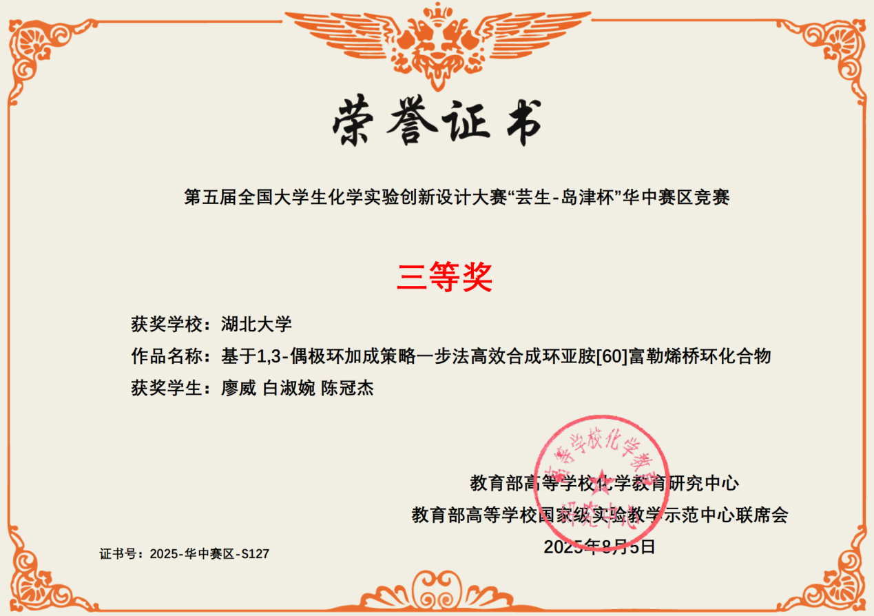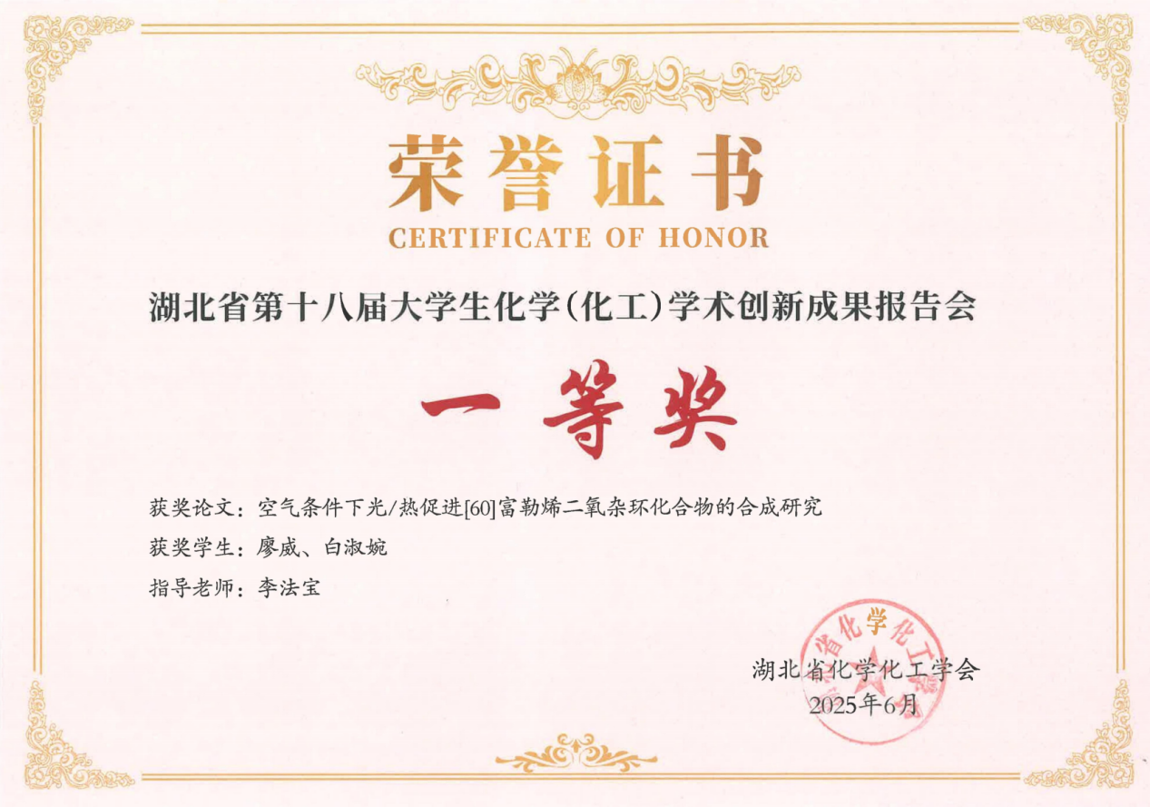 他曾任化院员工会学科部部长,现任本科生化学党支部组织委员和班级生活委员,前三学年学业成绩位于专业第二,综测位于专业第一,获得三好员工等多项荣誉称号,获得一等优秀员工奖学金,获湖北省老员工化学(化工)创新成果报告一等奖、全国老员工化学实验创新设计大赛华中赛区改进实验赛道二等奖及创新实验赛道三等奖,主持了一项省级老员工创新创业训练项目,并以第二作者身份发表论文一篇。